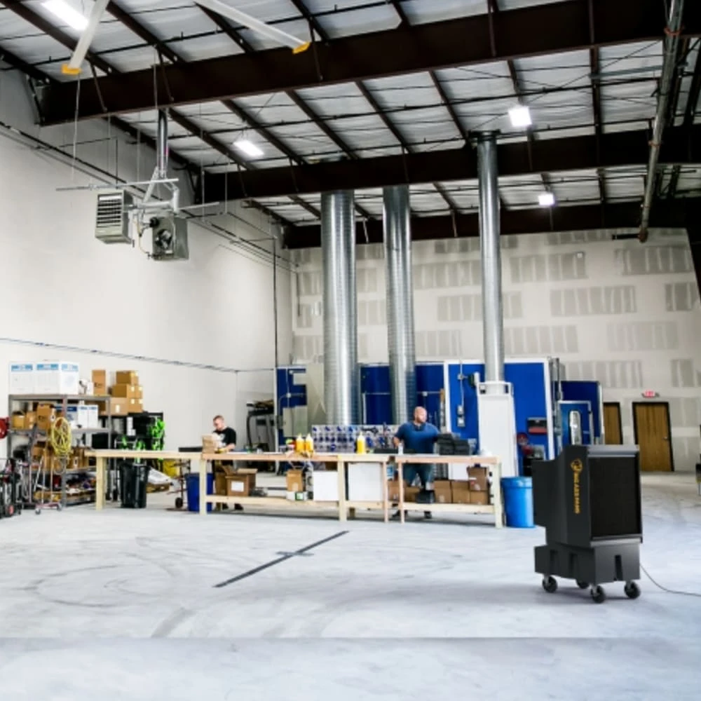 A good mid-size option for workshop, garage or studio, the Cool-Space 300 evaporative cooler from Big Ass Fans delivers instant airflow that can lower the air temperature of a space by up to 33 °F (18 °C), offering cooling relief in a powerful but quiet unit.