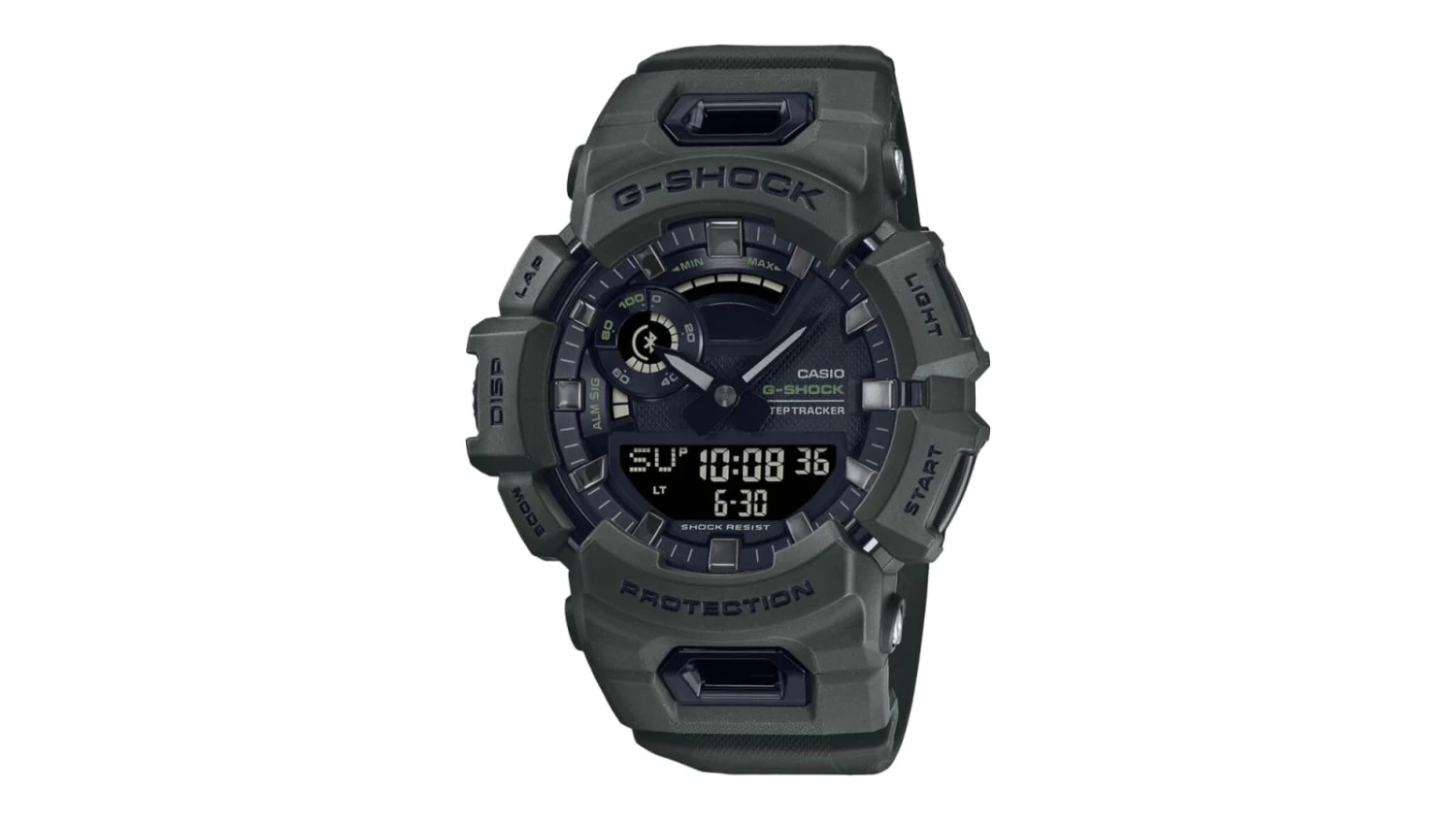 The shock-resistant and water-resistant GBA900UU-3A provides regular step count, calorie, and distance calculations, and comes equipped with various countdown and stopwatch features + 5 daily alarms. The resin case, band, and bezel provide both durability and comfort, and the battery life is approx. 2 years on CR2025.