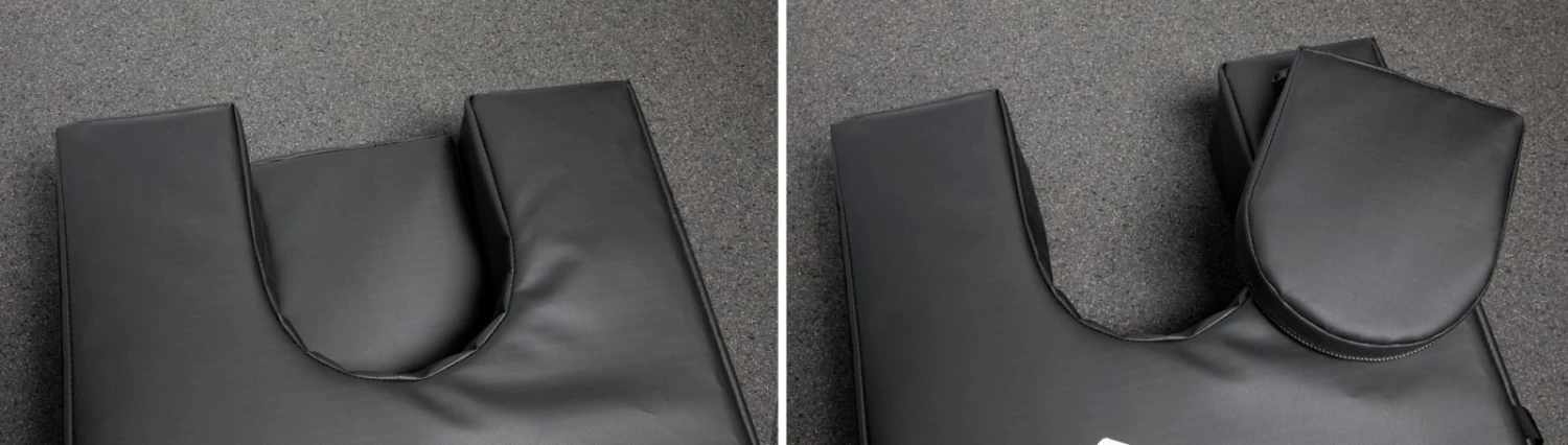 Measuring 72” x 20” x 6”, the American-made DT Tempering Table features 5” of supportive rigid foam, 1” of high-quality plush foam, and a durable ripstop vinyl exterior. The top of the table includes a U-shaped cutout and headrest, keeping the spine straight while offering comfortable head and neck support. A removable 1-foot cushion can be reattached at any location around the table to serve as an extension for an arm/leg or as a kneeling pad for the person handling the body tempering. When not in use, the 15LB table folds in half for easy transport and space-efficiency.