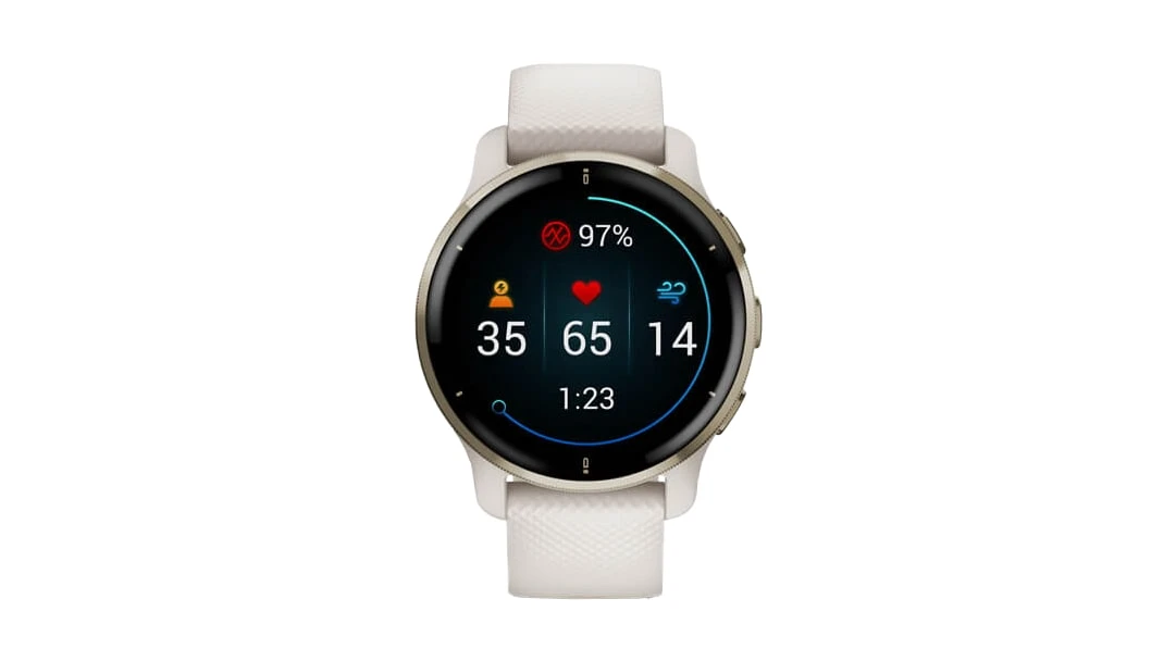 The Venu® 2 Plus from Garmin has all the advanced health monitoring and fitness features of the standard Venu 2 with the addition of voice functionality, including phone calls from the wrist and voice assistant capability (when connected via compatible smartphone).