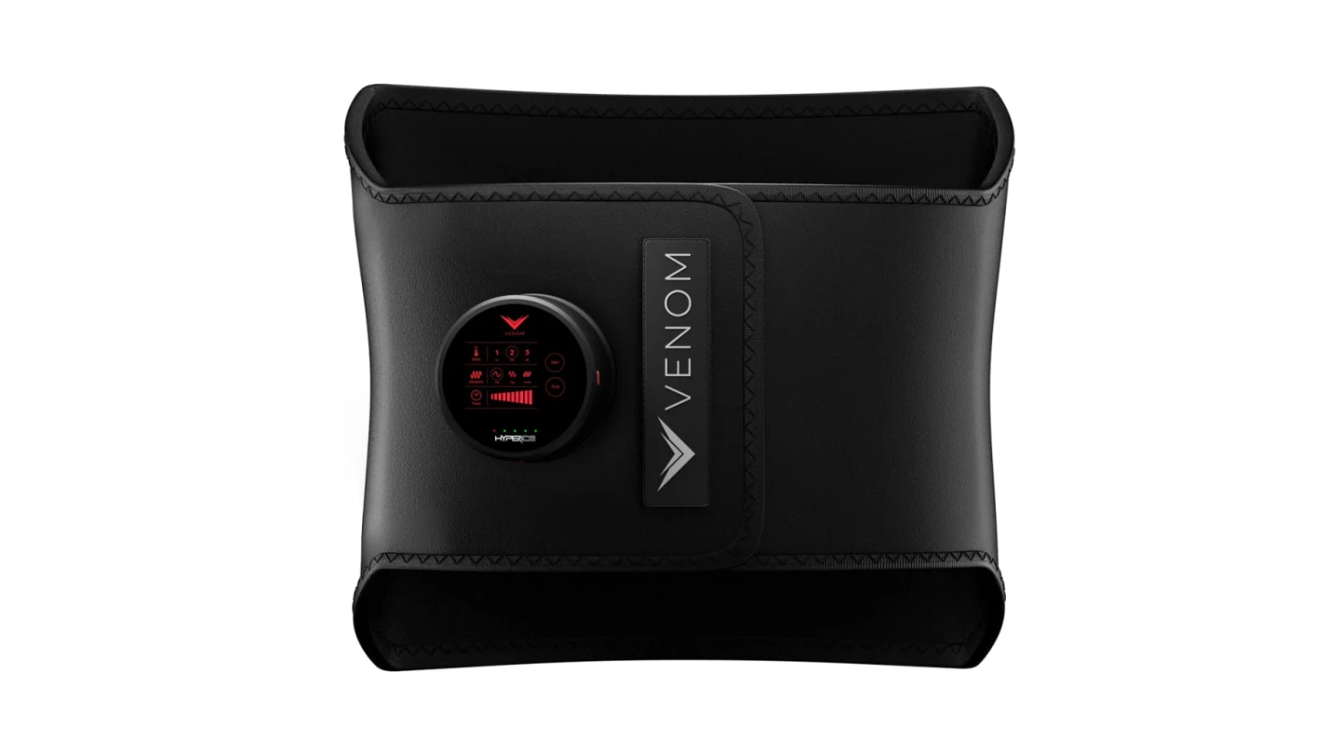 The heat itself is distributed via embedded nanotechnology, with four evenly spaced vibration pods providing a comfortable deep massage. For regular use, simply wrap the Venom around the lower back area (One Size Fits All), attaching the strap snugly so that the vibration pods are centered on the back. Then, select your desired settings, press START, and get a precision pre or post-workout massage while on the go.