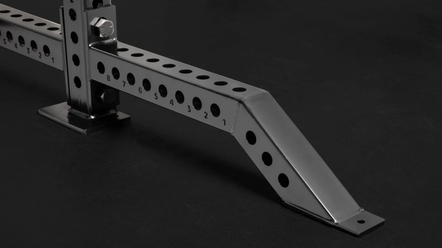 Compatible with any Rogue Monster Series power rack, these angled front-foot attachments extend 30” off the mounting face of your existing uprights, offering some additional stabilization and training versatility for the unit. These are the same feet that we first introduced with our Monster Collegiate Half Rack.