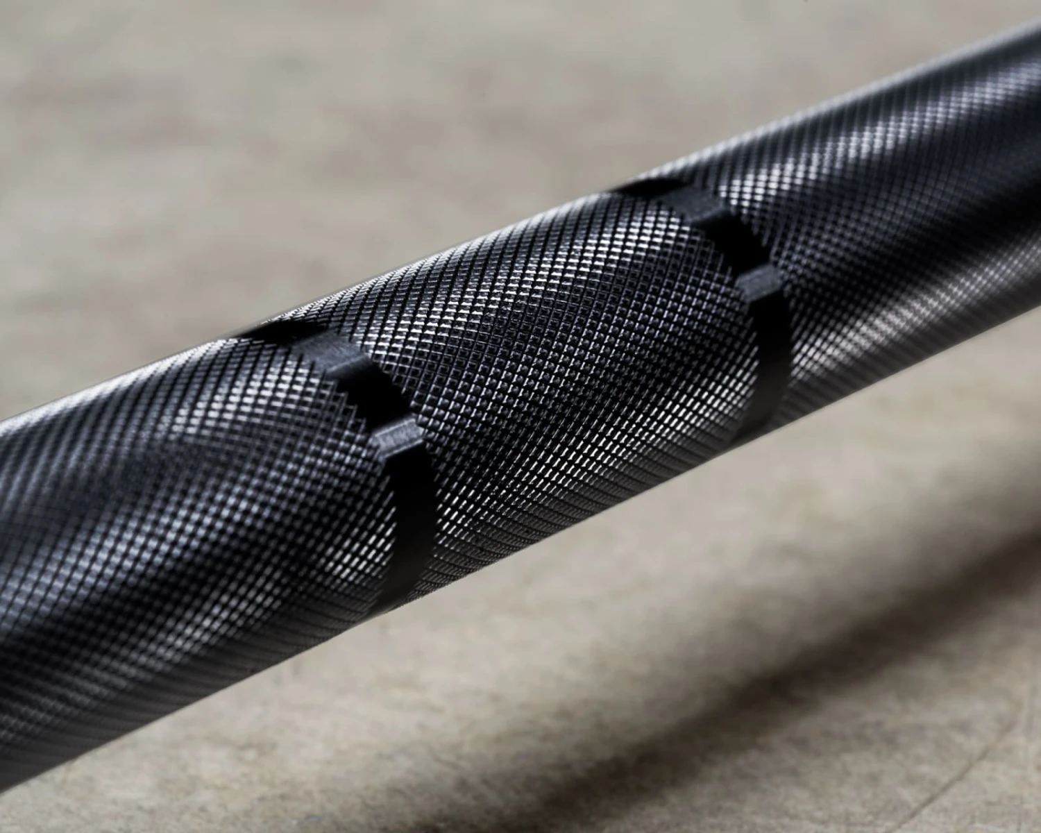 The latest version of the Junior Bar includes a 25MM, 190,000 PSI tensile strength shaft with dual knurl marks for both Olympic and powerlifting, no center knurl, and a black zinc coating. The bright zinc sleeves are cut short with a loadable length of 6.625″, while the distance between the collars is a competition standard 52-3/16”. This unique design makes the Junior Bar ideal for the beginning lifter–male or female, young or old–allowing them to load the bar with durable plates and train exactly as they would with a full-weight bar. The reduced sleeve length keeps the overall weight low, 11LB less than a women’s bar and half the weight of a men’s bar, while the collar spacing makes the bar conveniently rackable on any standard power rack.