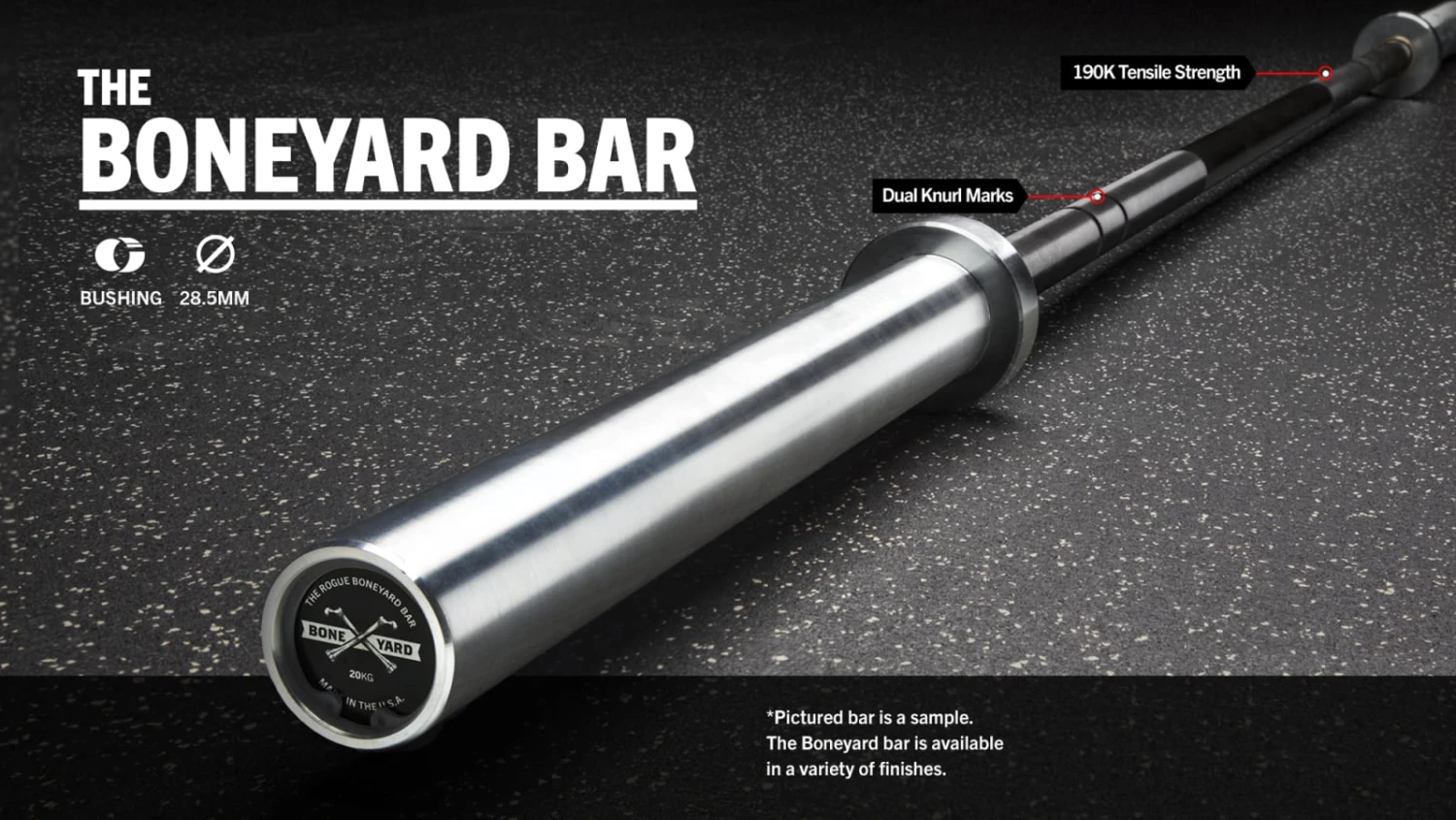 The Boneyard Bar lineup was created to allow what we consider quality seconds to still be used in a gym. These 28.5mm bushing bars are all new components with a minor flaw in fit and finish.