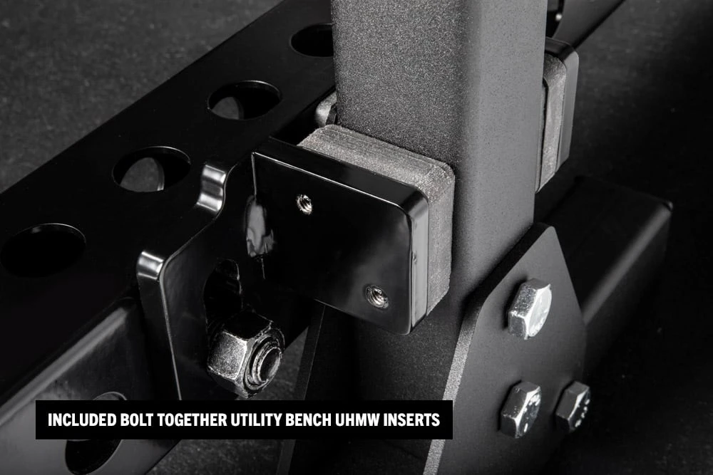 Compatible exclusively with our Monster Series power racks, the Rogue Bench Prop is a quick-attach crossmember that can help ensure your weight bench is perfectly centered and secured in the same position every time you use it. The unit includes a bolted-on center channel that we will custom-configure to your specific bench + rack set-up, with a protective UHMW plastic lining to create a tight fit around the bench’s front leg.