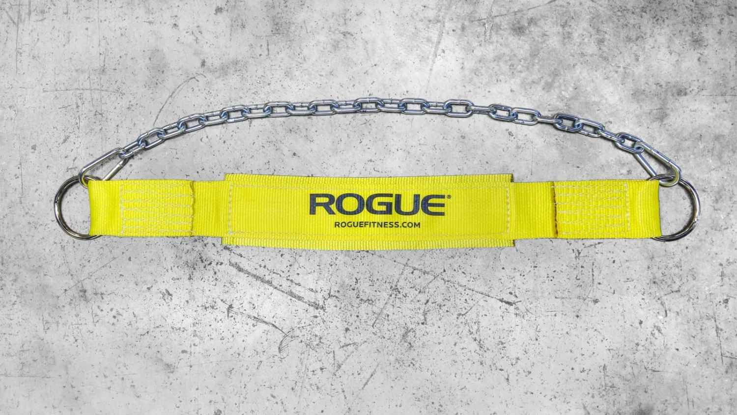 The Dip Belt comes equipped with a reinforced, comfort-fit nylon body with heavy stitching (available in black or yellow), a 30″ total chain length, and a pair of straight-gate, locking carabiners. You can choose from black or yellow nylon, and both options include exclusive Rogue branding.