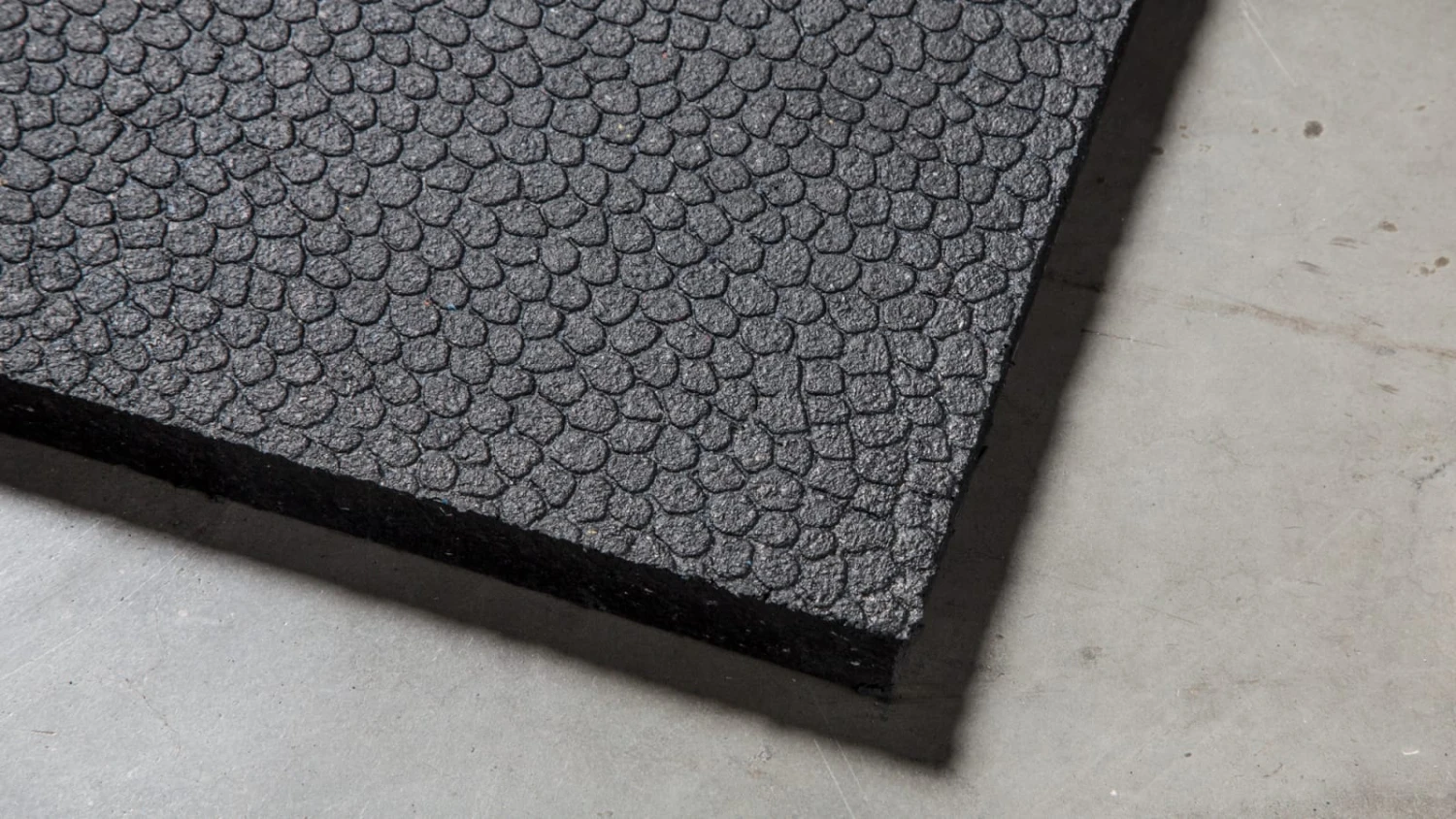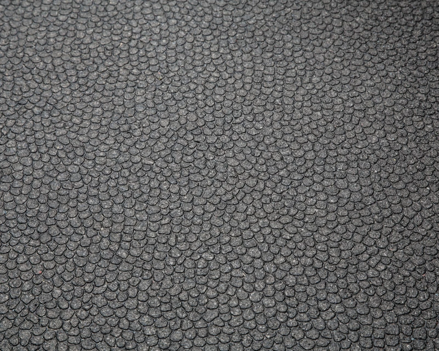 The updated Rogue Gym Mat is manufactured from a heavy-duty, nearly indestructible rubber matting used regularly in the agricultural and shipping industries. Each 6′ x 4′ mat is 3/4” thick for ample impact resistance and includes pre-trimmed edges for easily lining up multiple mats on a gym floor. A “pebble” style top surface and grooved bottom help provide a stable platform and grip with improved drainage.