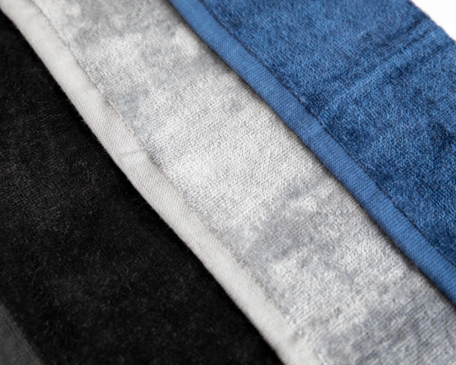 The official Rogue Gym Towel measures 17.75” x 31.5” and is made from a quality 100% cotton velour material. Stays soft through repeated uses; machine wash cold with like colors, tumble dry low.