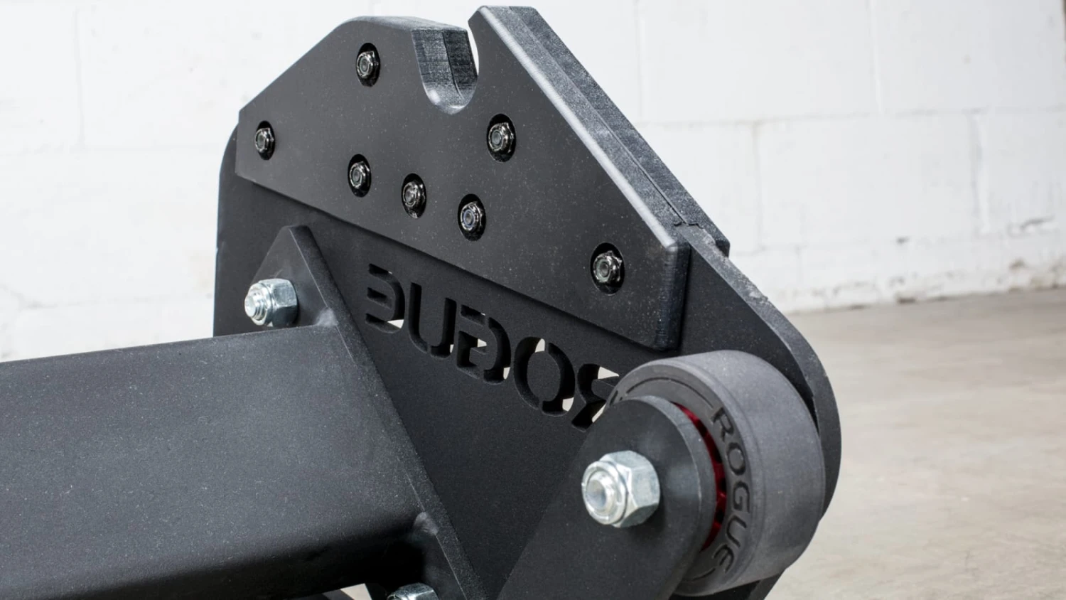 The Rogue HD Bar Jack is a heavy-duty, uniquely portable adaptation of our standard Deadlift Bar Jack. This design not only enables powerlifters to load and unload the barbell from a stable, elevated position, but also includes a set of six embossed wheels for quickly rolling the bar from a loading area to a lifting area—no matter how much weight has been added. Each wheel measures 72MM in diameter and includes a bearing and two bushings, ensuring a smooth, consistent roll even when moving the unit around angles.