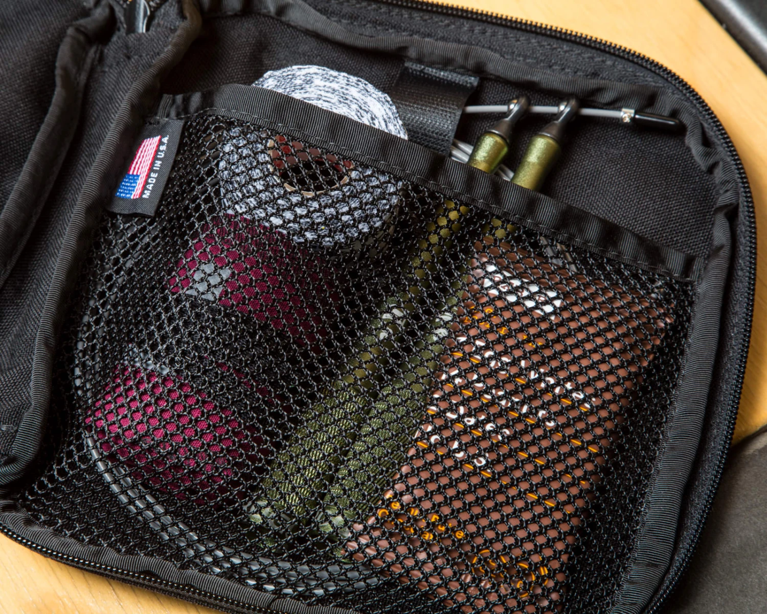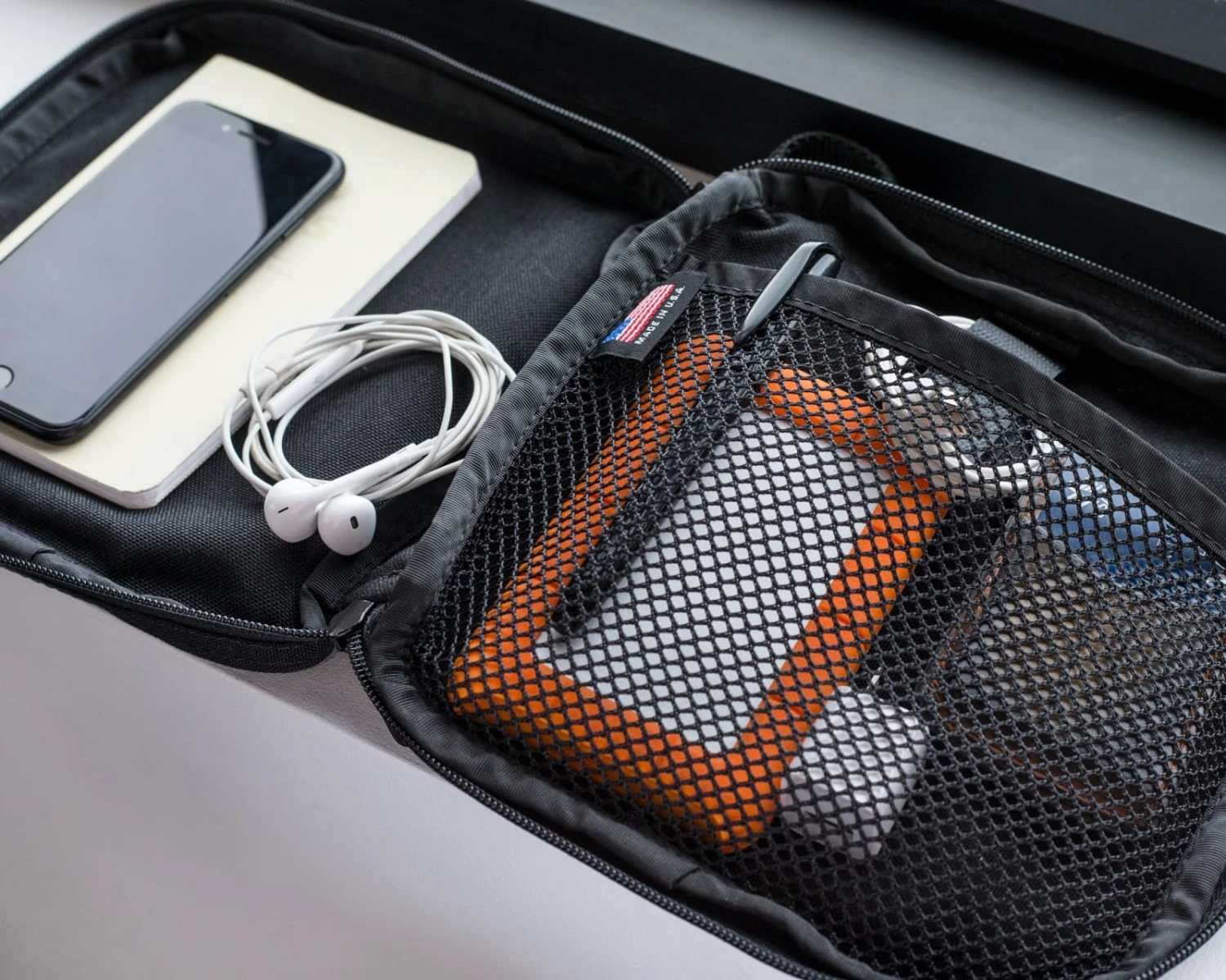 Measuring 8.5″ x 8.5″ and 1.5” in depth, it’s a perfect compact carrier for a wide assortment of smaller gear and accessories, including: