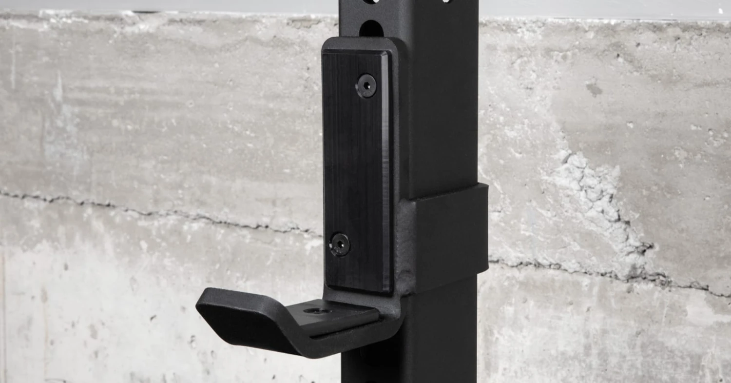 The unit comes standard with Infinity J-cups, a 24” removable pin/pipe safety set, and side panels with laser-cut Rogue branding. There is 1″ on-center hole spacing up the front and back of the uprights to allow for maximum height adjustability, meaning the standard 17.5″ bench height can be moved up and down by 1″ increments to serve a wide variety of athletes. Customers also have the option of adding elevated spotter decks that bolt onto the bench, giving spotters extra leverage and traction in case of a missed lift.