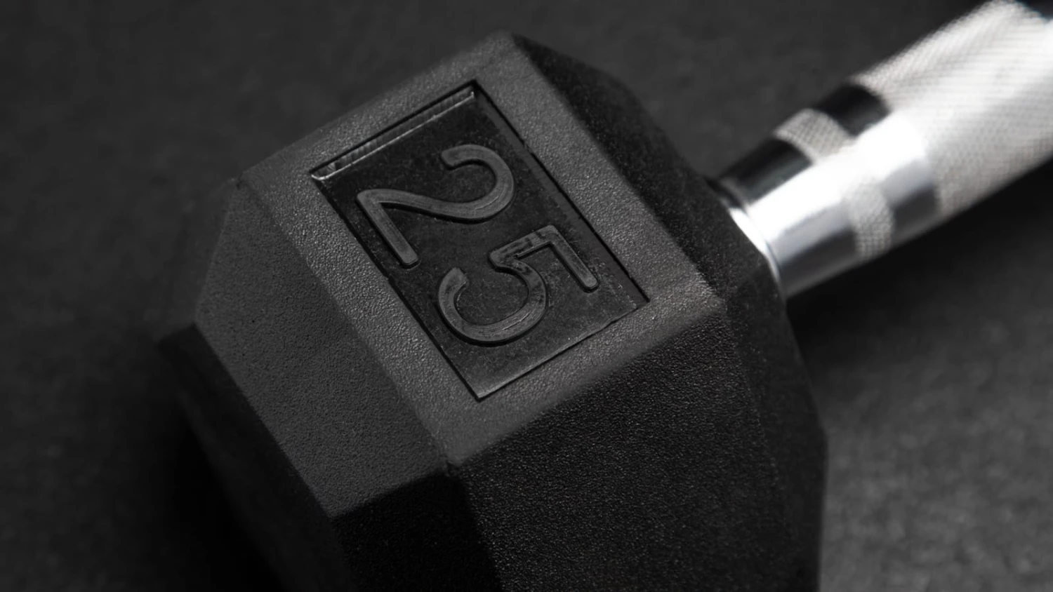 Rogue is now offering pairs of unbranded Rubber Hex Dumbbells while supplies last. Ranging from 2.5 LB up to 125 LB, each of these welded DBs has a weight tolerance of +/- 3% and includes embossed weight indications on two sides. The durable rubber-encased heads help reduce noise and prevent floor damage, while the chrome-plated steel handle is knurled for a firm but non-abrasive grip.