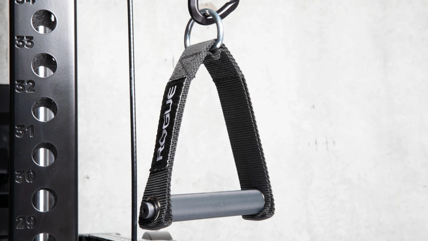 First introduced as an accessory with The Cave, the Rogue Single Handle Cable Attachment is now available as an a la carte item, compatible with any Lat Pulldown, Slinger, or similar type of cable pulley machine. It’s particularly well suited for use with cable crossover machines, as the fabric strap ensures no metal will dig into the forearms during cable flys and other movements.